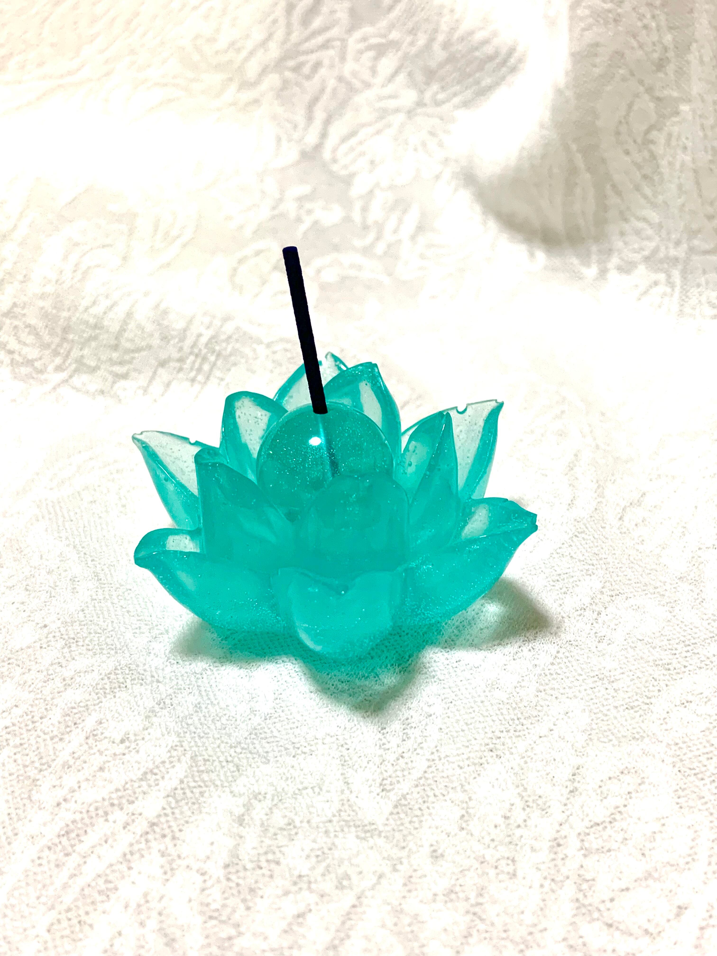 蓮のお線香立て エメラルドグリーンラメ入り